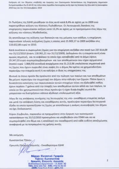 - Ο ορισμός της εν λόγω εκκαθαρίστριας έγινε με απευθείας ανάθεση από τη δημοτική αρχή Κυρίτση έναντι 11.934 ευρώ. (Αμφισβητεί ο κος Κυρίτσης την εργασία που κατέθεσε η εκκαθαρίστρια που ο ίδιος επέλεξε;)