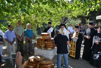 Μετά τήν ὁλοκλήρωση τῆς Θείας Λειτουργίας καί τῆς Ἀρτοκλασίας τά μέλη τῆς ὁμάδας τῶν «Μαύρων Λύκων» προσέφεραν στούς πολυπληθεῖς προσκυνητές δροσιστικό κέρασμα, ὅπως πράττουν κάθε χρόνο.