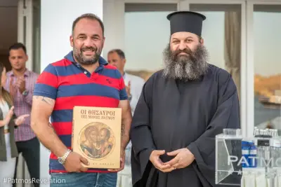 Αναμνηστικά δώρα προσφέρθηκαν από τον Αρχιμανδρίτη πατέρα Βαρθολομαίο προς τον Ομοσπονδιακό τεχνικό κολύμβησης, Νίκο Γέμελο, από τον δήμαρχο Πάτμου, Γρηγόρη Στόικο, προς τον παγκόσμιο πρωταθλητή Περικλή Ιακωβάκη και από τον υπεύθυνο Τουρισμού & Αθλητισμού του Δήμου Πάτμου, Γιάννη Σκεμπέ προς τον πρωταθλητή Ευρώπης κολύμβησης ανοιχτής θαλάσσης, Αντώνη Φωκαΐδη.