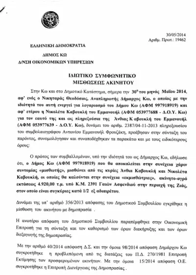Α. το συμφωνητικό μίσθωσης του ακινήτου-πάρκινγκ στη Ζιά,