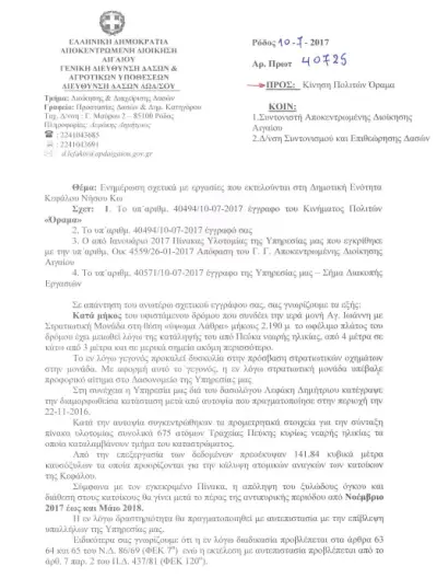 η επικεφαλής της παράταξής μας Ιωάννα Ρούφα κατέθεσε αίτημα (αρ. πρωτ. 40494/10.07.2017) ενημέρωσης στη Διεύθυνση Δασών Δωδεκανήσου με θέμα: «Ενημέρωση σχετικά με εργασίες που εκτελούνται στη περιοχή Λάθρα της Δημοτικής Κοινότητας Κεφάλου».