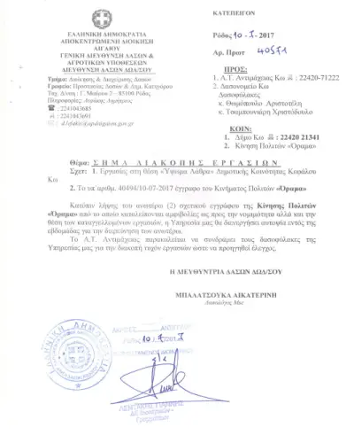 Με αίσθημα ευθύνης σας κοινοποιούμε την άμεση απάντηση της διευθύντριας της Διεύθυνσης Δασών Δωδεκανήσου και το επίσης άμεσο σήμα διακοπής εργασιών που εξέδωσε.