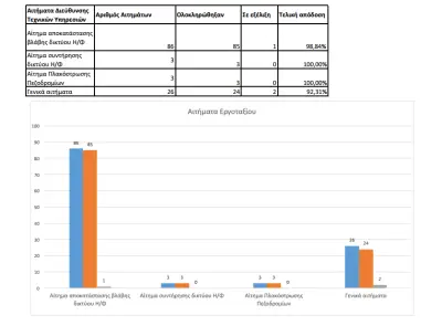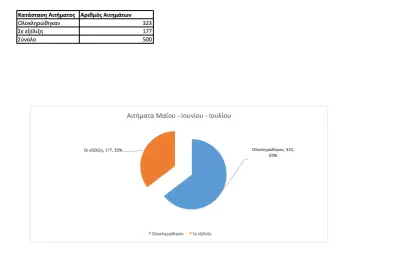 Από τα 500 αιτήματα που κατατέθηκαν, διεκπεραιώθηκαν τα 323 (ποσοστό 65%) ενώ 177 βρίσκονται σε εξέλιξη.