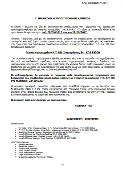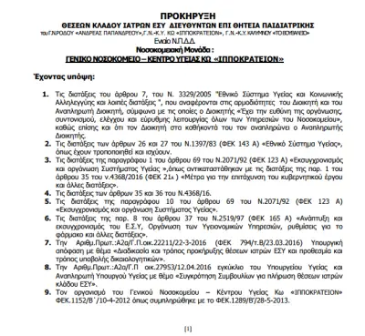 «Προκήρυξη 2 θέσεων κλάδου Ιατρών ΕΣΥ Διευθυντών Παιδιατρικής στο Γενικό Νοσοκομείο – Κέντρο Υγείας Κω»