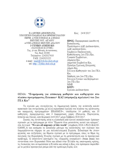 2ο ΓΕΛ Κω: Ενημέρωση για επίσκεψη στο πλαίσιο προγράμματος Erasmus
