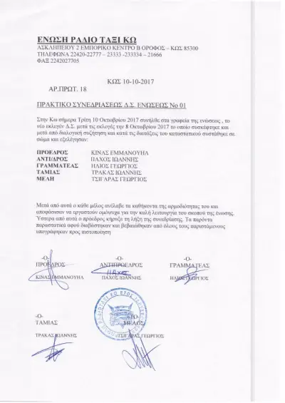 Συγκροτήθηκαν σε σώμα τα νέα Διοικητικά συμβούλια στο Σύνδεσμο Ιδιοκτητών Ταξί Κω και στην Ένωση Ραδιοταξί Κω