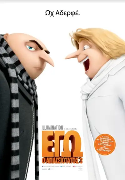 «Εγώ, ο Απαισιότατος» των Πιέρ Κοφέν, Κάιλ Μπάλντα, Έρικ Γκιγιόν στην μεταγλώττισμένη έκδοση με τις φωνές των Γιάννης Ζουγανέλης, Λευτέρης Ελευθερίου, Κατερίνα Γκίργκις, Ακίνδυνος Γκίκας