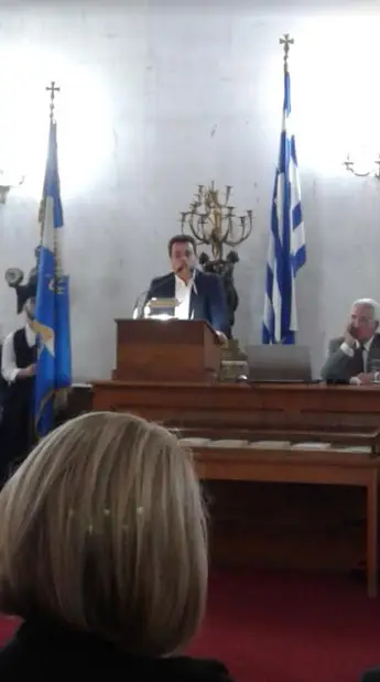 Χαιρετισμό επίσης απηύθηνε και ο Πρόεδρος της Ένωσης Καλυμνίων Αττικής κος Δημ. Καλικάτζαρος προτείνοντας τη δημιουργία Μουσειακής αίθουσας στο νησί της Καλύμνου, όπου θα εκτίθεται συγκεντρωμένο το ιστορικής σημασίας υλικό το οποίο ήδη υπάρχει σχετικά με τη ζωή και το έργο του Σκεύου Ζερβού.