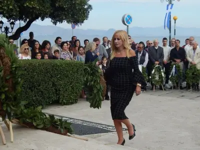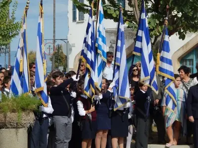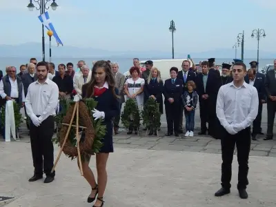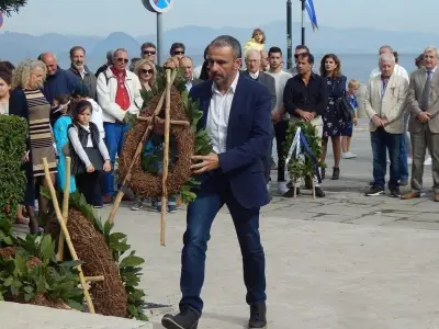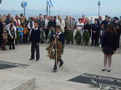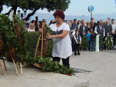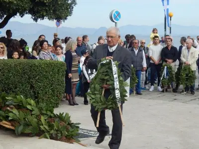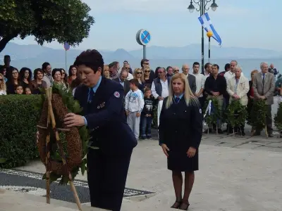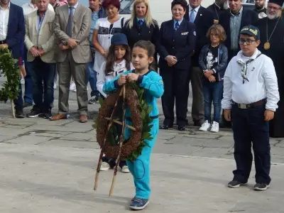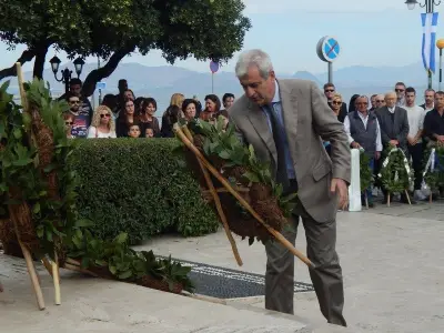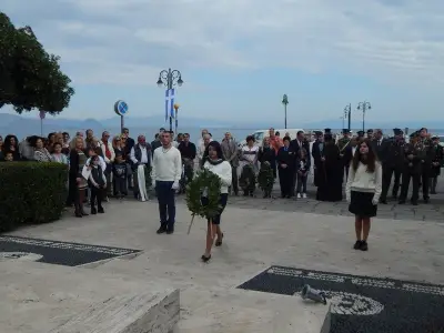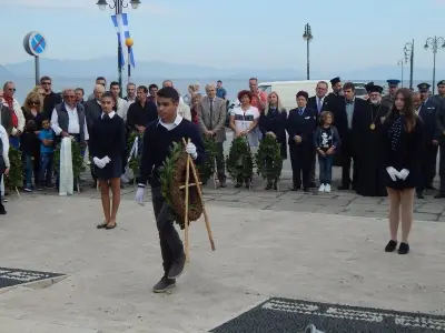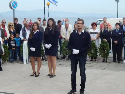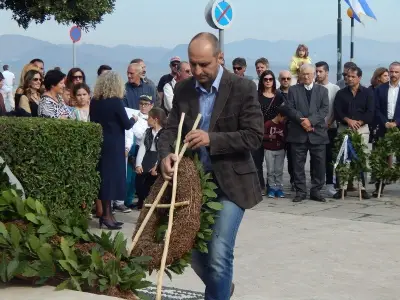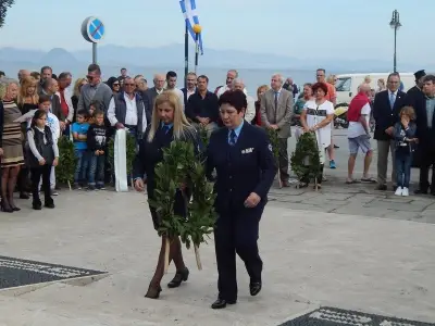 Αρχικά πραγματοποιήθηκε κατάθεση στεφάνων από Μαθητές, Προσκόπους, Οδηγούς, Λύκειο Ελληνίδων, Ιδρύματα, Σωματεία, Συλλόγους της πόλης με τη παρουσία των Τοπικών Αρχών και των Εφεδροπολεμιστικών Οργανώσεων, στο Μνημείο των Ηρώων.