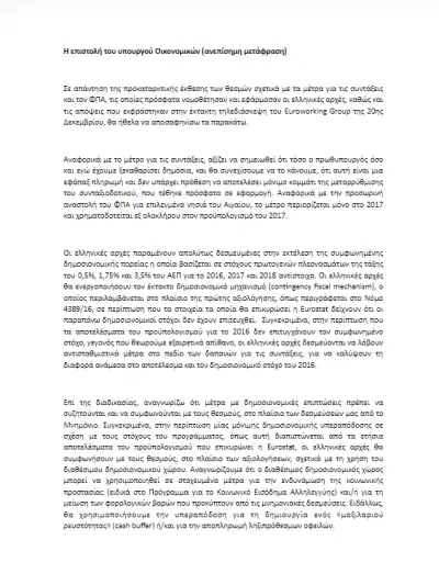 Ο Υπουργός Οικονομικών κ. Τσακαλώτος με επιστολή του ενημερώνει το Eurogroup το Δεκέμβριο του 2016 ότι «Αναφορικά με την προσωρινή αναστολή του ΦΠΑ για επιλεγμένα νησιά του Αιγαίου, το μέτρο περιορίζεται μόνο στο 2017 και χρηματοδοτείται εξ’ ολοκλήρου στον προϋπολογισμό του 2017» Δείτε την επιστολη στη photo gallery παρακάτω, με αποτέλεσμα στο σχέδιο του κρατικού προϋπολογισμού για το 2018 που κατατέθηκε στη βουλή η κυβέρνηση ενέταξε την πλήρη κατάργηση του μειωμένου ΦΠΑ για τα νησιά του Αιγαίου.