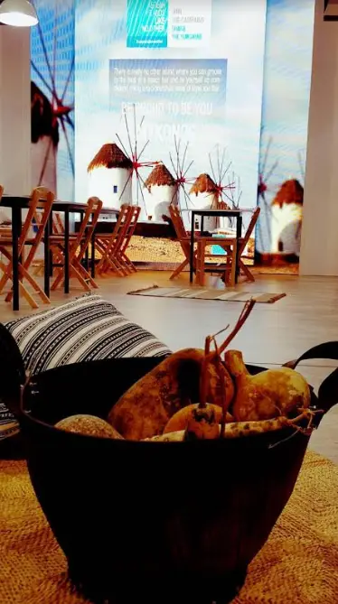 Στο περίπτερο της Περιφέρειας, η αισθητική του οποίου, από πέρυσι έχει αλλάξει ριζικά, για να ανταποκρίνεται και να αποδίδει το πραγματικό περιεχόμενο της εμπειρίας «Νότιο Αιγαίο», κάνοντας απολύτως διακριτή και αναγνωρίσιμη την παρουσία του στον εκθεσιακό χώρο, συμμετέχουν τα νησιά Ρόδος, Κως, Μύκονος, Σαντορίνη, Τήνος, Αστυπάλαια, Πάρος, Φολέγανδρος, Άνδρος, Κύθνος, Κάλυμνος, Λέρος, Κάρπαθος, Κάσος, τους Λειψοί, Ίος, Νάξος, Πάρος, Σέριφος, Αντίπαρος, Μήλος, Αμοργός, και Κάλυμνος.