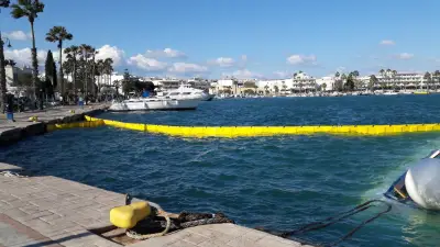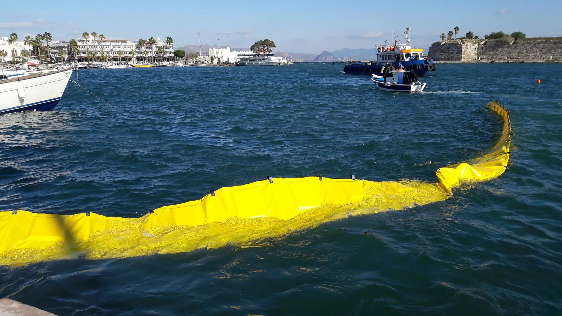 Ταυτόχρονα μεταφέρθηκε και τοποθετήθηκε το πλωτό φράγμα αντιρύπανσης που διαθέτει το Λιμενικό Ταμείο.