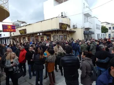 Αν και τα περισσότερα καταστήματα δεν έκλεισαν αρκετοί επιχειρηματίες και πολίτες συμμετείχαν στην συγκέντρωση διαμαρτυρίας που πραγματοποιήθηκε στις 12 το μεσημέρι έξω από τα γραφεία της ΔΟΥ Κω.