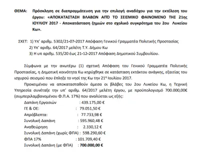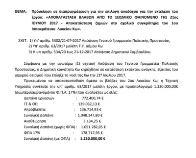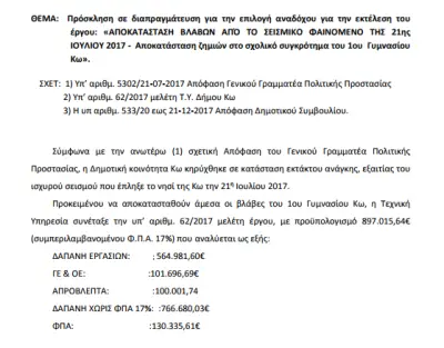 Ιπποκράτειο Λύκειο Κω: 300 ημερολογιακές μέρες (στην καλύτερη περίπτωση) από την υπογραφή της σύμβασης!!!