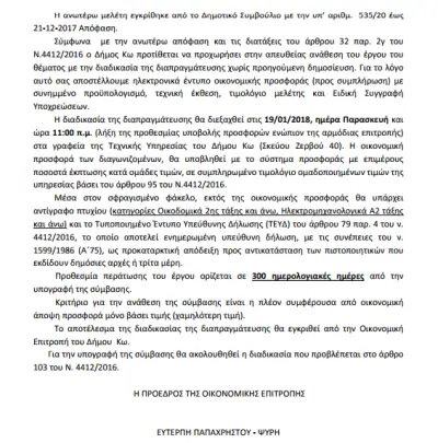 Επισυνάπτουμε τις προσκλήσεις με ημερομηνία 17/01/2018 που καλούν τους «επιλεγμένους» εργολάβους να καταθέσουν προσφορές στις 19/01/2018 και ώρα 11 το πρωί.