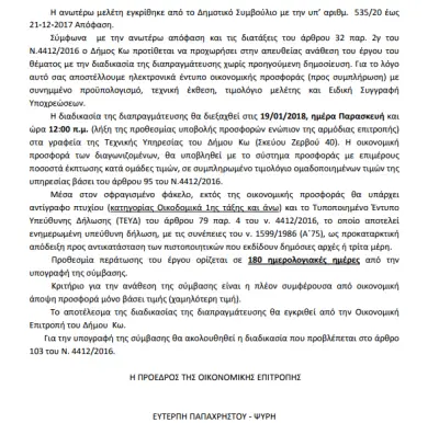 2ο Λύκειο Κω: 180 ημερολογιακές μέρες (στην καλύτερη περίπτωση) από την υπογραφή της σύμβασης!!!