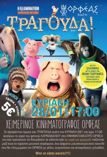 ΥΠΟΘΕΣΗ: Σε έναν κόσµο σαν τον δικό µας, αλλά κατοικηµένο αποκλειστικά από ζώα, ο Μπάστερ Μουν, ένα ζωηρό κοάλα, προεδρεύει σε ένα πάλαι ποτέ µέγα θέατρο, που όµως περνάει µεγάλη κρίση. Λίγο οπτιµιστής, λίγο απατεωνάκος, αλλά αγαπάει το θέατρο του όσο τίποτα άλλο, Ο Μουν θα κάνει τα πάντα για να το διατηρήσει. Αυτό που του έρχεται στο µυαλό του, µήπως και σώσει την κατάσταση, είναι να διοργανώσει τον µεγαλύτερο τραγουδιστικό διαγωνισµό του κόσµου.