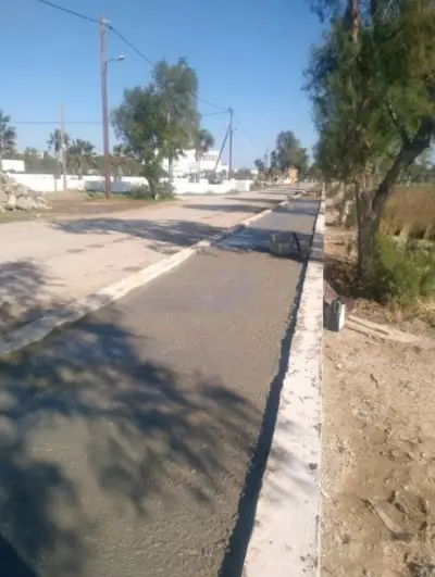 Αυτή τη στιγμή βρίσκεται σε εξέλιξη η κατασκευή των φρεατίων και των βάσεων των ιστών Ηλεκτροφωτισμού από σκυρόδεμα και θα ακολουθήσει η σκυροδέτηση της βάσης εσωτερικά των πεζοδρομίων από σκυρόδεμα πάχους 10εκ. επάνω στην οποία θα τοποθετηθούν οι πλάκες πεζοδρομίου.
