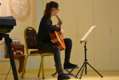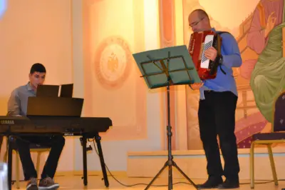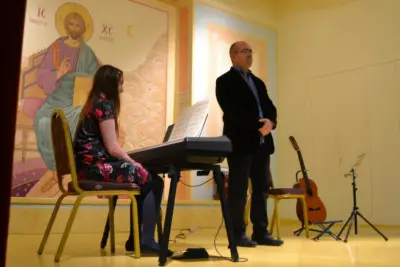 Μετὰ τὴν ὁλοκλήρωση τῆς ἰδιαιτέρως ἐνδιαφέρουσας, περιεκτικῆς καὶ μὲ πολλὲς ἀναφορὲς στὰ κείμενα τῶν Τριῶν τιμωμένων Ἁγίων ὁμιλίας τῆς κ. Κουζούκα, μαθητές σχολείων τῆς Κῶ, οἱ ὁποῖοι, παράλληλα μὲ τὰ μαθήματα τοῦ σχολείου, ἐντρυφοῦν καὶ στὸν ὄμορφο κόσμο τῆς μουσικῆς στὸ Κέντρο Μουσικῶν Σπουδῶν ὑπὸ τὴν καθοδήγηση τοῦ Καθηγητοῦ Μουσικῆς κ. Τσαμπίκου Καματεροῦ ψυχαγώγησαν τὸ κοινὸ μὲ κομμάτια κλασικῆς καὶ σύγχρονης μουσικῆς γιὰ πιάνο κιθάρα καὶ ἀκορντεόν. Μάλιστα, στὸ τελευταῖο κομμάτι ὁ κ. Καματερὸς συνόδευσε μὲ τὸ ἀκορντεόν του.