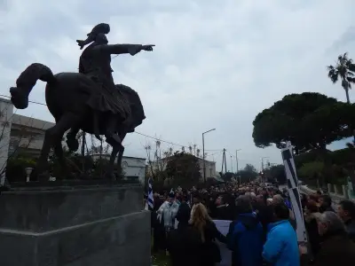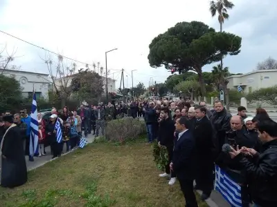 Αρχικά η συγκέντρωση ξεκίνησε από τον Ανδριάντα του Αρχιστράτηγου Θ.Κολοκοτρώνη , όπου τελέστηκε Τρισάγιο από τον Σεβασμιώτατο Μητροπολίτη Κώου - Νισύρου, με την παρουσία κόσμου και αρχών, ενώ στη συνέχεια ο κόσμος συγκεντώθηκε στην Πλατεία Ελευθερίας.