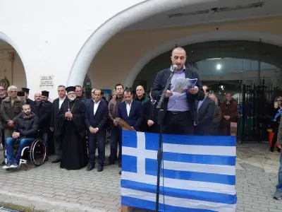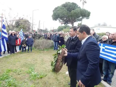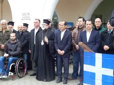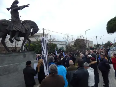 Στην Πλατεία Ελευθερίας υπήρξαν χαιρετισμοί από εκπρόσωπο της συντονιστικής Επιτροπής και των τοπικών αρχών ,ενώ ο καθηγητής κ. Δημ.Καραματζιάνης, εκ μέρους των Συλλόγων & Σωματείων εκφώνησε ομιλία για το κάλεσμα για την Μακεδονία.