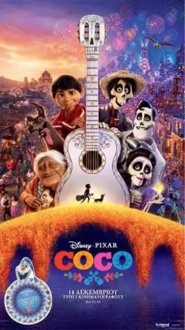 «Coco» των Λι Άνκριτς και Άντριαν Μολίνα με τις φωνές των Χρήστου Θάνου, Γιώργου Ζαχαρόπουλου, Σίας Κοσκινά, Βίνας Παπαδοπούλου, Δημήτρη Παπαδάτου, Κώστα Δαρλάση, Σπύρου Μπιμπίλα