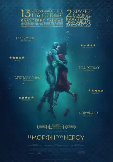 Υπόθεση: Από τον κορυφαίο παραμυθά Γκιγιέρμο Ντελ Τόρο, η ταινία εξελίσσεται το 1963 καταμεσής του Ψυχρού Πολέμου. Σε ένα εργαστήριο της κυβέρνησης, κρυμμένο και ασφαλισμένο από τα μάτια του κοινού, η μοναχική Ελάιζα ζει αιχμάλωτη σε άκρα ησυχία και απομόνωση. Η ζωή της θα αλλάξει για πάντα όταν αυτή και μια συνάδελφός της, η Ζέλντα, ανακαλύπτουν ένα αυστηρά απόρρητο πείραμα της κυβέρνησης. Χρυσός Λέοντας στο Φεστιβάλ της Βενετίας, δύο Χρυσές Σφαίρες και 13 υποψηφιότητες για Όσκαρ, μεταξύ των οποίων Όσκαρ Καλύτερης Ταινίας, Σκηνοθεσίας και Α’ Γυναικείου Ρόλου.