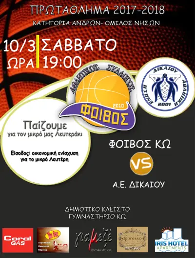 19:00 Φοίβος Κω – Α.Ε. Δικαίου (ανδρικό)