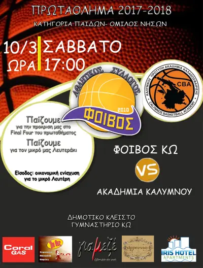 17:00 Φοίβος Κω – Ακαδημία Καλύμνου (παιδικό)