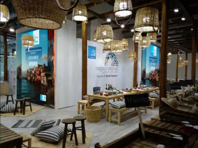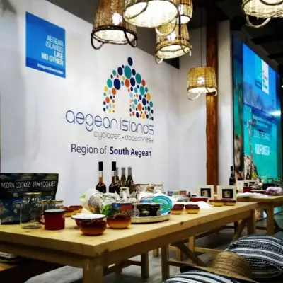 Στο περίπτερο της Περιφέρειας Νότίου Αιγαίου συμμετέχουν φέτος τα νησιά Ρόδος, Κως, Πάτμος, Αστυπάλαια, Κάρπαθος, Λέρος και Λειψοί από τα Δωδεκάνησα, καθώς επίσης η Σαντορίνη, η Μύκονος, η Αμοργός, η Αντίπαρος, η Σέριφος, η Σίφνος, η Μήλος, η Φολέγανδρος, η Κύθνος, η Νάξος, η Άνδρος, η Ίος, η Κέα, η Πάρος και η Τήνος από τις Κυκλάδες, ενώ φιλοξενείται και η Ομοσπονδία Ενοικιαζομένων Δωματίων και Διαμερισμάτων Δωδεκανήσου.