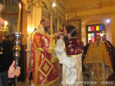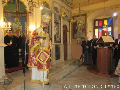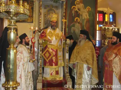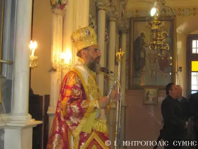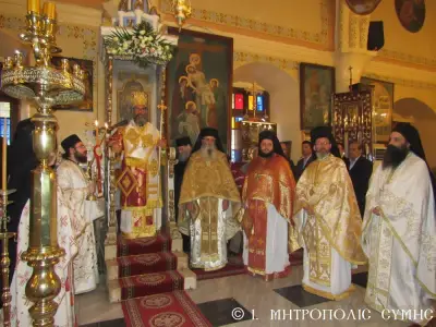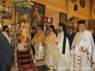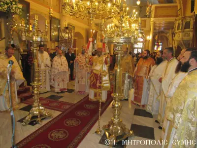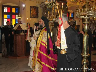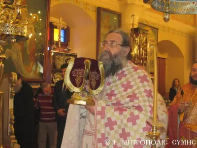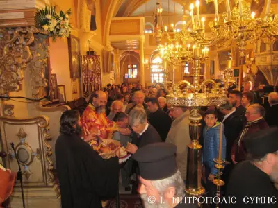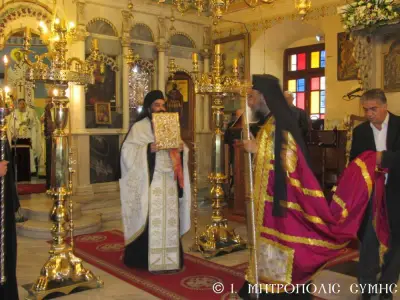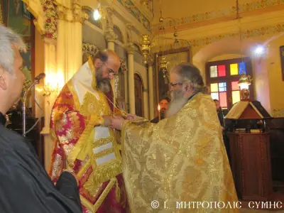 Τέλος ὁ Σεβασμιώτατος διένειμε τό ἀντίδωρο καί ἐπίσης δίπτυχο μέ τό εἰκονίδιο τοῦ Ταξιάρχου Μιχαήλ τοῦ Πανορμίτου, ἀναγράφον τό γεγονός καί τήν ἡμερομηνίαν τῆς Ἐνθρονίσεως, δεχόμενος τίς εὐχές καί τήν πηγαία ἔκφραση ἀγάπης τοῦ πολυπληθοῦς ἐκκλησιάσματος.