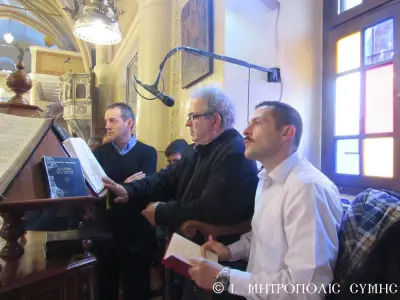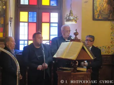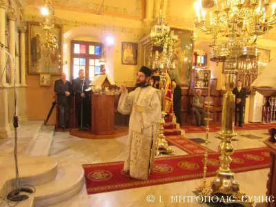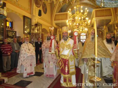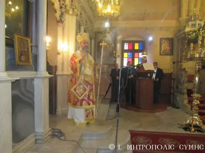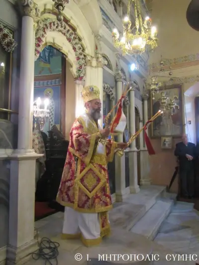 Ἡ Θεία Μυσταγωγία ὁλοκληρώθηκε ἤρεμα καί κατανυκτικά κάτω ἀπό τό γλυκύτατο βλέμμα τῆς «Πλατυτέρας τῶν Οὐρανῶν», μέ τούς πιστούς νά ἀλληλοπεριχωροῦνται προσευχητικά καί νά προσεγγίζουν τίς καρδιές τους πνευματικά, «εἰκονίζοντες μυστικῶς τά Χερουβίμ καί προσάδοντες τῇ ζωοποιῷ Τριάδι τόν Τρισάγιον Ὕμνον».