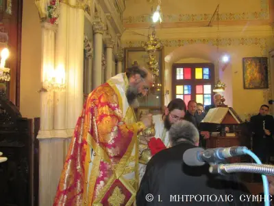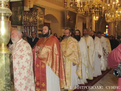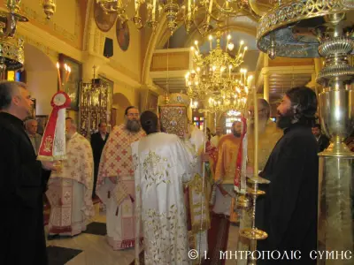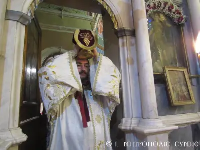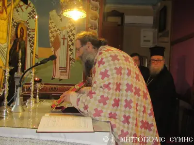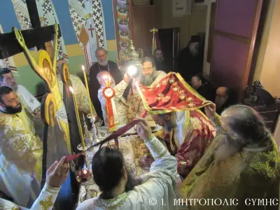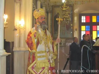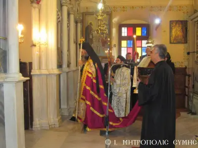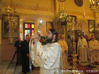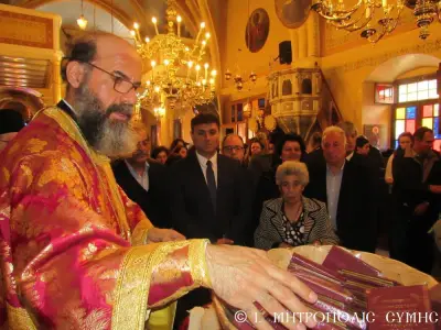 Μέ περισσή σεμνότητα καί ἰδιαίτερη ἱεροπρέπεια ἐτελέσθη σήμερα 18η Μαρτίου 2018 Κυριακή Δ΄ τῶν Νηστειῶν, στόν Μητροπολιτικό Ἱ. Ναό Τιμίου Προδρόμου Σύμης, ἡ πρώτη Ἀρχιερατική Θεία Λειτουργία, ἱερουργοῦντος τοῦ Σεβ. Ποιμενάρχου μας, Μητροπολίτου Σύμης, Τήλου, Χάλκης καί Καστελλορίζου κ. Χρυσοστόμου τοῦ Β΄. Ὁ Σεβασμιώτατος Μητροπολίτης μας χοροστάτησε κατά τήν ἀκολουθία τοῦ Ὄρθρου καί ἐν συνεχείᾳ τέλεσε τήν Θεία Λειτουργία συλλειτουργούντων πολλῶν κληρικῶν καί Ἁγιορειτῶν Πατέρων, οἱ ὁποῖοι συμμετεῖχαν στήν χθεσινή Ἐνθρόνισή του. Ἐντός τοῦ Ἱεροῦ Βήματος παρέστησαν συμπροσευχόμενοι, ὁ Σεβ. Μητροπολίτης Σεβαστείας κ. Δημήτριος, ἐκπρόσωπος τῆς Α.Θ.Π. τοῦ Οἰκουμενικοῦ ἡμῶν Πατριάρχου κ. Βαρθολομαίου καί ὁ Σεβ. πολιός Μητροπολίτης Καρπάθου καί Κάσου κ. Ἀμβρόσιος.