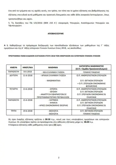 Στις 8 Ιουνίου, ημέρα Παρασκευή με το μάθημα της Νεολλεηνικής Γλώσσας ξεκινούν εφέτος οι Πανελλαδικές Εξετάσεις για τα ημερήσια και εσπερινά Γενικά Λύκεια. Μία ημέρα νωρίτερα στις 7 Ιουνίου θα αρχίσουν οι εξετάσεις στα ΕΠΑΛ. Οι φετινές Πανελλαδικές Εξετάσεις θα είναι μικρότερες σε διάρκεια σχέση με πέρυσι καθώς οι υποψήφιοι εξετάζονται σε λιγότερα μαθήματα.