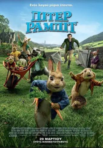 «Πίτερ Ράμπιτ» του Ουίλ Γκλυκ στην μεταγλωττισμένη έκδοση με τις φωνές των Φάνη Μουρατίδη, Πέτρου Δαμούλη, Αντώνη Ζαχαράτου, Φοίβου Ριμένα, Χρήστου Συριώτη, Τζίνη Παπαδοπούλου, Άντρια Ράπτη, Χρύσα Διαμαντοπούλου