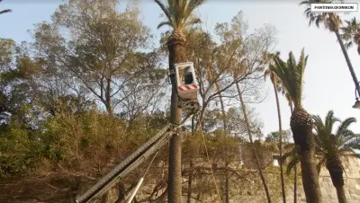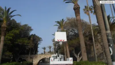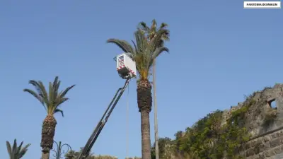 Παράλληλα συνεργείο της υπηρεσίας πραγματοποίησε εργασίες προστασίας των φοινίκων από τα παράσιτα στη θέση Καμάρα με τη χρήση ανυψωτικού μηχανήματος αλλά και φυτοπροστατευτικών παρασκευασμάτων.