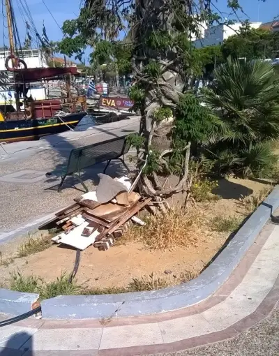 Απέσυρε τα πλαστικά κιγκλιδώματα και δεν αποκατέστησε την εικόνα με μικροεπεμβάσεις ώστε οι δημότες και οι τουρίστες να μην αντικρίζουν αυτό το θέαμα.