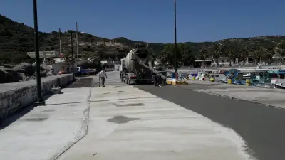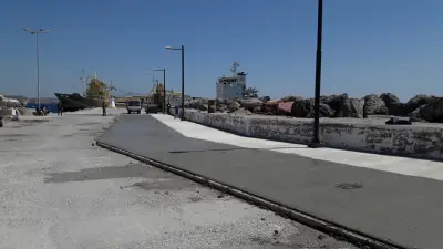 α) Την αποκατάσταση του τσιμεντένιου δαπέδου στο λιμάνι (έργο που θα έχει ολοκληρωθεί εντός μιας εβδομάδας).