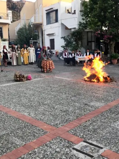 Οι φωτιές του Αϊ Γιαννιού που άναβαν στις 23 Ιουνίου το βράδυ. Μία ή τρεις φωτιές ή κάψαλα ή φανούς, άναβαν με στάχια, ξερά κλαδιά από κουκιές ή παλιοκόφινα, σε όλες τις γειτονιές, προσπαθώντας ο κάθε ένας να ανάψει την μεγαλύτερη φωτιά. Στις φωτιές έριχναν και τα στεφάνια της Πρωτομαγιάς ή το στεφάνι του Αϊ Γιάννη της περασμένης χρονιάς, ενώ τη στάχτη τη μεταχειρίζονταν για αποτρεπτικούς και μαντευτικούς σκοπούς. Πάνω από τις φλόγες με γέλια, φωνές και «δίστιχα» πηδούσαν όλοι οι κάτοικοι του χωριού τρείς φορές. Το πήδημα πάνω από τις φλόγες ήταν για τους αρχαίους ένα έθιμο καθαρτήριο και «διαβατήριο». Με αυτόν τον τρόπο οι άνθρωποι, με τη δύναμη της φωτιάς, καθαρίζονταν και απαλλαγμένοι από κάθε κακό έμπαιναν καθαροί και ακμαίοι στη νέα περίοδο του χρόνου. Οι φωτιές που ανάβονται στα χωριά μας είναι ένας δεσμός του σήμερα με το χθες. Ανάβοντας μια μικρή φωτιά συνδέεσαι με τους αιώνες που πέρασαν, καθώς και με πολλούς άλλους λαούς, που ανάβουν τη φωτιά και χαίρονται το θέαμα και το συμβολισμό της.