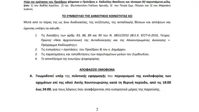 Δείτε παρακάτω την απόφαση της Δημοτικής Κοινότητας Κω στη συνεδρίαση της 5ης Ιουλίου, όπως αυτή δημοσιεύθηκε στο Διαύγεια, σχετικά με την “Έκφραση γνώμης για την πιλοτική εφαρμογή του περιορισμού της κυκλοφορίας των οχημάτων στην Ακτή Κουντουριώτη, κατά τη θερινή περίοδο”.