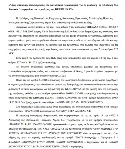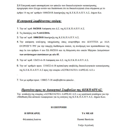 β) την κατακύρωση του διαγωνισμού, με το έτσι θέλω, στη μοναδική εταιρεία που κατέθεσε την μοναδική προσφορά και που δεν πληρούσε τους όρους και τις προδιαγραφές τους οποίους το ίδιο το δ/σ της ΚΕΚΠΑΠΥΑΣ ψήφισε!