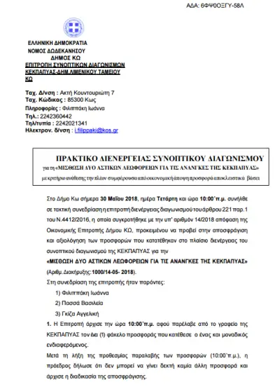 Με τον πλέον σκανδαλώδη τρόπο η κα Πη ακύρωσε το πρακτικό της επιτροπής διενέργειας του συνοπτικού διαγωνισμού για τη μίσθωση 2 λεωφορείων αστικού τύπου.