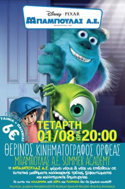 Η εταιρεία «Μπαμπούλας Α.Ε.»πολλά πολλά χρόνια μετά την ίδρυση της, αποφασίζει ΦΕΤΟΣ ΤΟ ΚΑΛΟΚΑΙΡΙ να ανοίξει το δικό της παράρτημα και να λειτουργήσει στην άκρως εξωτική τοποθεσία του ΘΕΡΙΝΟΥ ΚΙΝΗΜΑΤΟΓΡΑΦΟΥ ΟΡΦΕΑ τη ΜΠΑΜΠΟΥΛΑΣ summer academy. Εκπαιδευτές και Εκπαιδευόμενοι θα επιδοθούν σε εντατικά μαθήματα καλοκαιρινής τρέλας, ξεφαντώματος και καλλιτεχνικής δημιουργίας. Και μην ξεχνάτε σε αυτήν την ΜΠΑΜΠΟΥΛΟΠΟΛΗ από ΔΩΡΑ και ΠΑΙΧΝΙΔΙΑ δεν ξεμένει κανείς!!!!!!