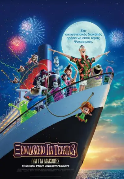 Υπόθεση: Η αγαπημένη μας οικογένεια πάει ταξίδι με ένα πολυτελές κρουαζιερόπλοιο για τέρατα. Έτσι ο Ντρακ θα κάνει κι αυτός μια φορά διακοπές, αντί να φροντίζει τις διακοπές όλων των άλλων στο ξενοδοχείο. Όλοι περνούν υπέροχα παίρνοντας μέρος στις δραστηριότητες που προσφέρονται στο πλοίο, όπως βόλεϊ για τέρατα, εξωτικές εξορμήσεις και φεγγαρο-θεραπεία. Οι ονειρεμένες διακοπές όμως μετατρέπονται σε εφιάλτη όταν η Μέιβις αντιλαμβάνεται πως ο Ντρακ έχει ερωτευτεί τη μυστηριώδη καπετάνιο, την Έρικα, η οποία κρύβει ένα επικίνδυνο μυστικό που θα μπορούσε να καταστρέψει όλα, μα όλα τα τέρατα.