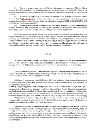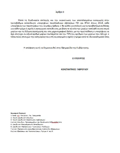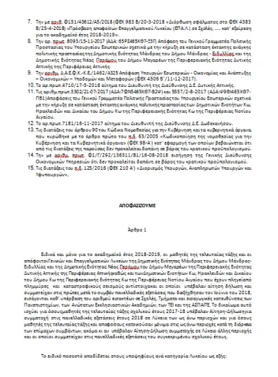 Υπογράφτηκε από τον Υπουργό Παιδείας, Έρευνας και Θρησκευμάτων Κωνσταντίνο Γαβρόγλου Υπουργική Απόφαση που προβλέπει ειδικό ποσοστό θέσεων εισαγωγής στην Τριτοβάθμια Εκπαίδευση για τους υποψηφίους των Πανελλαδικών Εξετάσεων που διεξήχθησαν τον Ιούνιο του 2018 από τις περιοχές Μάνδρας, Νέας Περάμου και Κω, οι οποίες επλήγησαν από φυσικές καταστροφές.