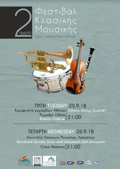 Πιο συγκεκριμένα, την Τρίτη 25 Σεπτεμβρίου 2018 στις 21.00, το Κουαρτέτο Εγχόρδων Αθηνών θα συμπράξει με τον ταλαντούχο βαρύτονο Τούρκο τραγουδιστή Teyfik Rodos, στο εμβληματικό Ρωμαϊκό Ωδείο Κω, ερμηνεύοντας άριες των Χέντελ, Μαρτσέλο, Σκαρλάτι και Πέρσελ, καθώς δε θα λείπουν και έργα σπουδαίων συνθετών συμφωνικής μουσικής, όπως του Πάχελμπελ, του Βιβάλντι, του Μότζαρτ, του Στράους, του Κωνσταντινίδη, του Σκαλκώτα κ.ά.