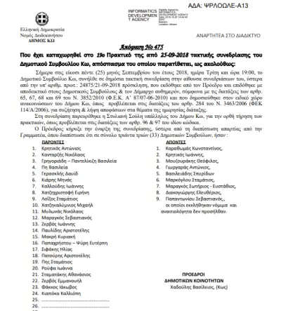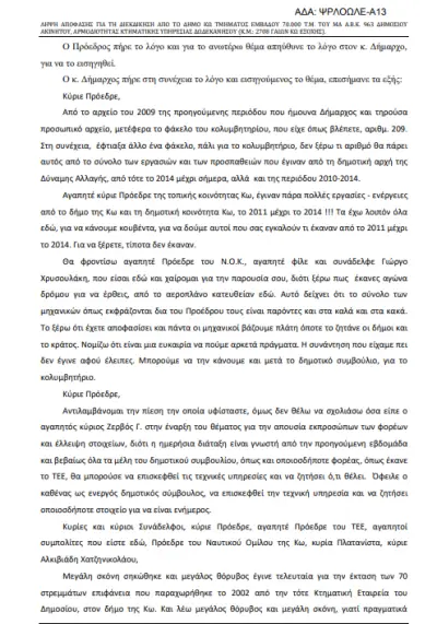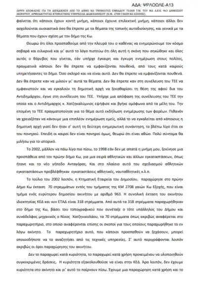 Στο νομικό κομμάτι δεν υπάρχει μέλος του δημοτικού συμβουλίου που να μην έχει λόγο να προσφύγει κατά της νομιμότητας της απόφασης που επισυνάπτουμε για τα δικά σας συμπεράσματα.