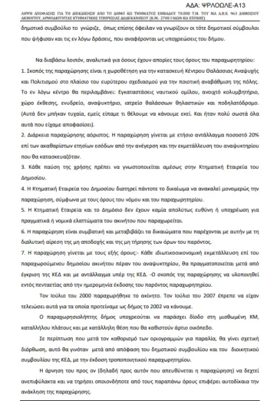 Έσυρε τους δημοτικούς του συμβούλους (ακολούθησε και ο κος Καλούδης) να ψηφίσουν την παραχώρηση κατά χρήση... και στην απόφαση έγραψε το έξης τρομερό!