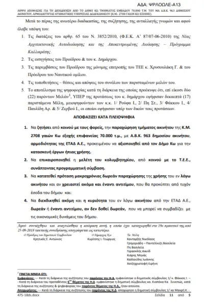 Άλλα τους έβαλε ο κύριος Κυρίτσης να ψηφίσουν και άλλα έγραψαν στην μνημειώδη απόφαση για την «παραχώρηση» των 70 στρεμμάτων του ΝΟΚ.