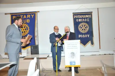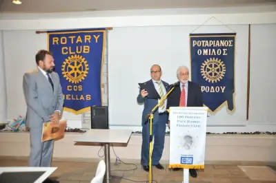 Την εκδήλωση άνοιξε ο γραμματέας του Ροταριανού Ομίλου Κω κ. Αρσενικός ο οποίος καλωσόρισε τους παρευρισκόμενους δίνοντας τον λόγο στον πρόεδρο του Ροταριανού Ομίλου Ρόδου κ. Παμπρή ο οποίος συγκινημένος ανέφερε τους ιδιαίτερους δεσμούς φιλίας των προέδρων των δυο Ομίλων από τα παιδικά και εφηβικά τους χρόνια.
